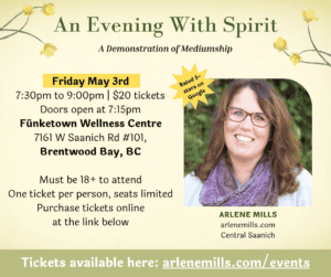 Join us in-person at Fünketown Wellness Centre for an Evening of Mediumship with professional mediums Arlene Mills. During the demonstration, Arlene will connect to audience members’ loved ones in spirit.